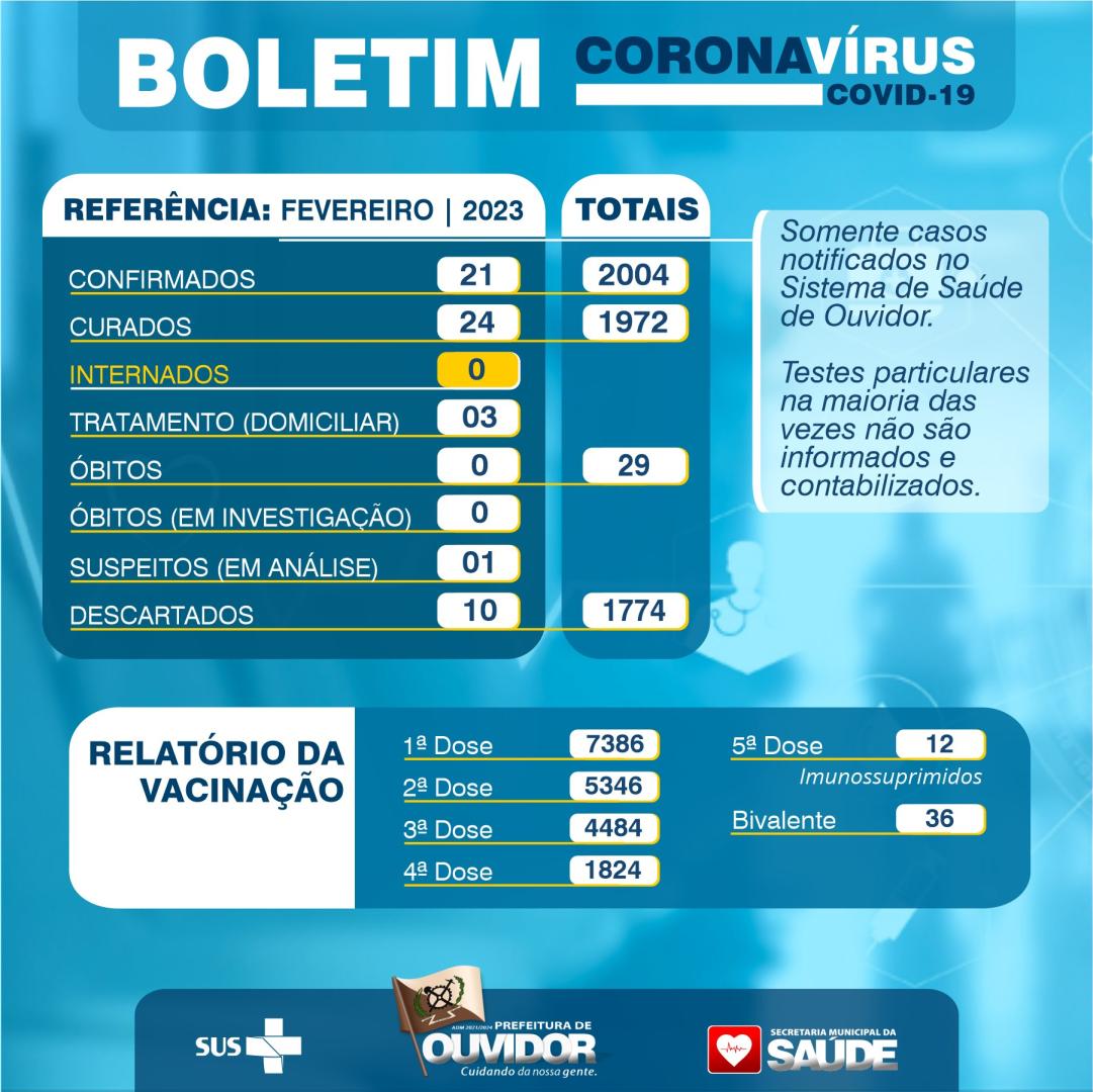 Publicado em: 10/03/2023 Acompanhe a evolução do coronavírus e a vacinação em Ouvidor